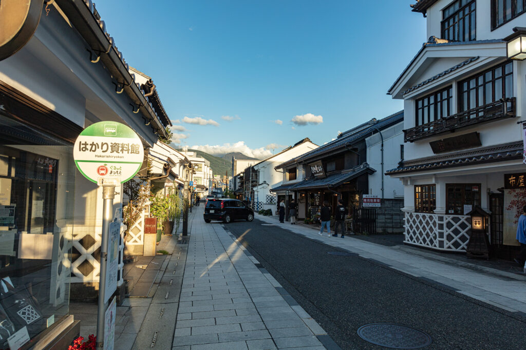 De straten zitten vol charmante oude winkels, die elk hun eigen bijzondere sfeer hebben. Hier vind je Sake brouwerijen, gezellige cafés in traditionele huizen, en kleine winkels vol lokale producten. Het is een geweldige plek om in je eigen tempo rond te wandelen en te genieten van de rustige sfeer van de oude stad.